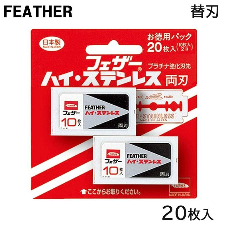 FEATHER (フェザー) ハイ ステンレス 両刃 20枚入 カミソリ 替刃 (ゆうパケット送料無料)